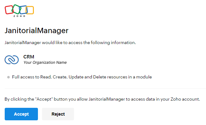 Locations in Janitorial Manager must be mapped to Accounts in Zoho CRM.