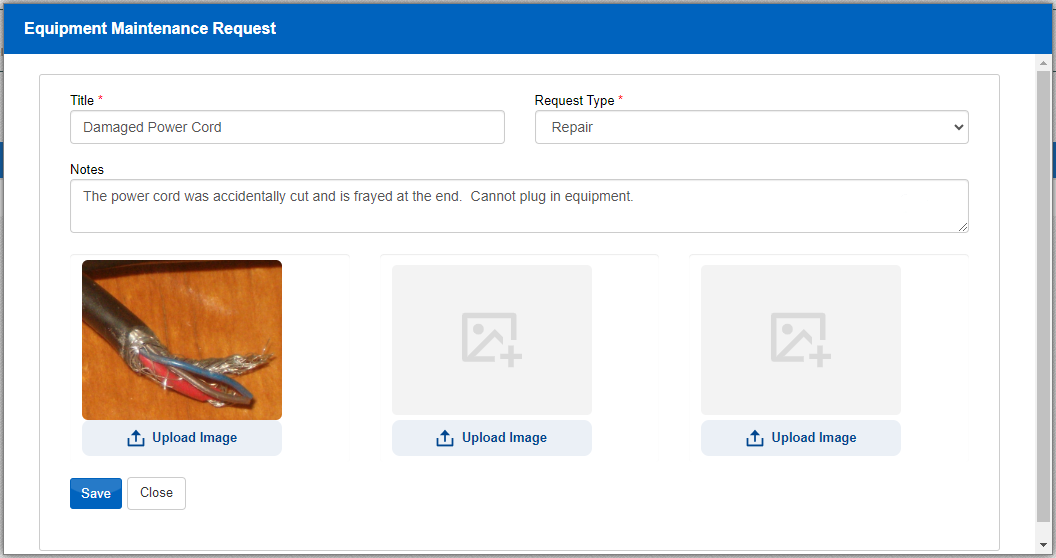 - Type - The type of maintenance request (service, repair, breakdown, or parts).