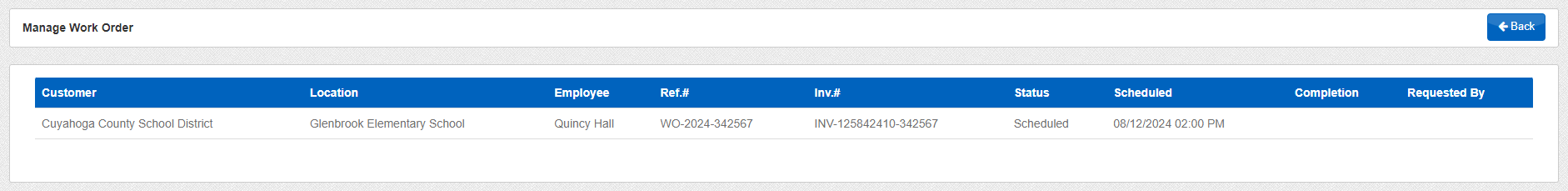 Only employees marked as Maintenance Technician on their Employee Maintenance page can be scheduled on a maintenance request work order. - Scheduled Date - The scheduled date and time of the work order.