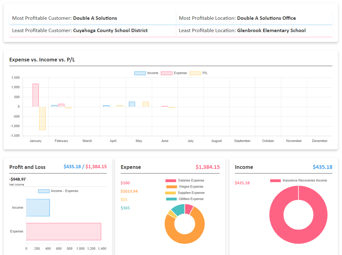 One-time and recurring transactions can be recorded using Janitorial Manager's Accounting feature.