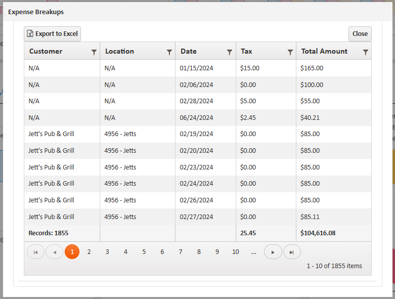 Transactions can be recorded at the account, customer, or location level via the web portal. For accuracy, record income (e.g., service revenue) at the customer or location level and expenses (e.g., advertising) at the account level.
