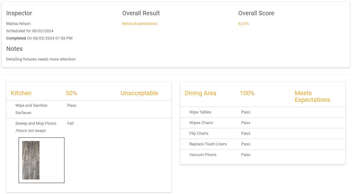 - Inspected area names