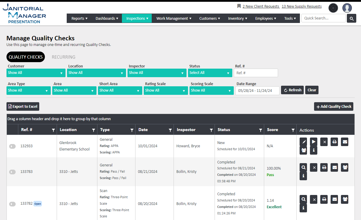 For more information, or to send in a request to the Janitorial Manager support department, use the red 'Help' button in the bottom right corner of any Help Desk article.