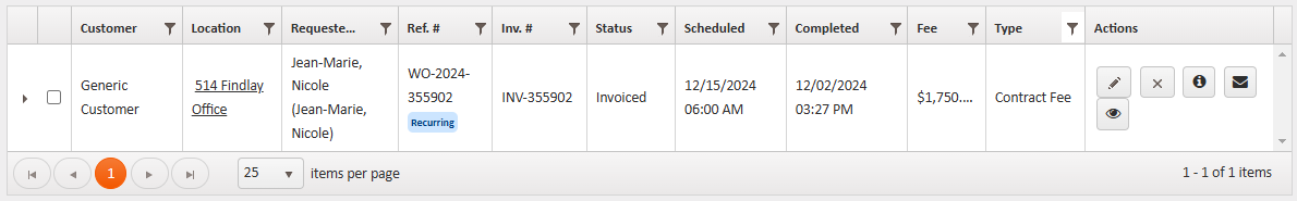 Answer: Individual work orders cannot be combined in JM. If you send monthly invoices, we suggest creating a recurring work order for the location's contract fee. The service fee can be updated before invoicing the work order.