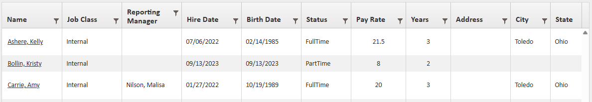 Reports > Employees > Active List