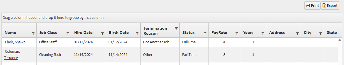 Reports > Employees > Terminated List