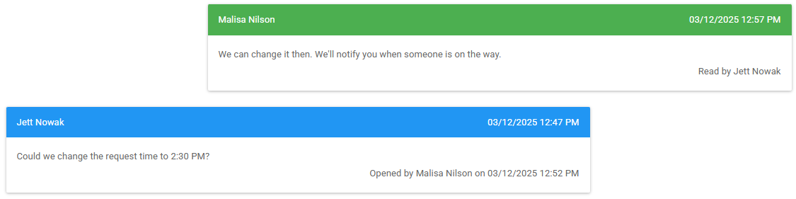 - Opened - A user marked the request as Opened.