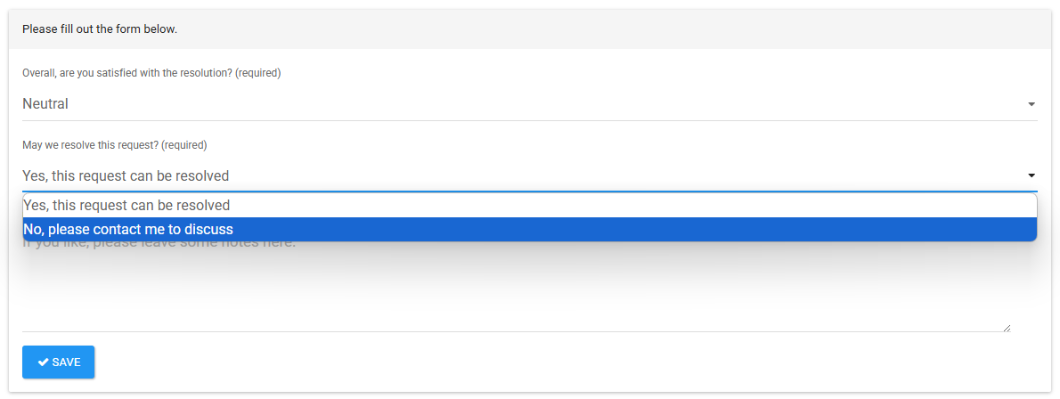 If the client denies resolution, the request will revert to In-Progress. - Confirm Resolution, Skip Client Confirmation - Changes request status to Resolved.