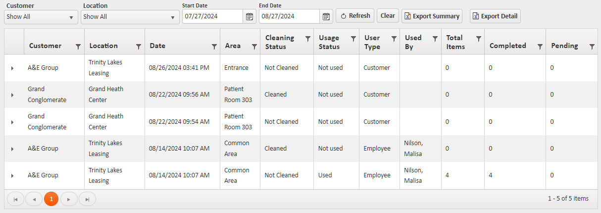 - Customer User Type - The area's Cleaning Status was updated with an Area Status QR Code.