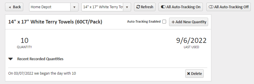 - Select Refresh. The item's current quantity and last used date will be visible.