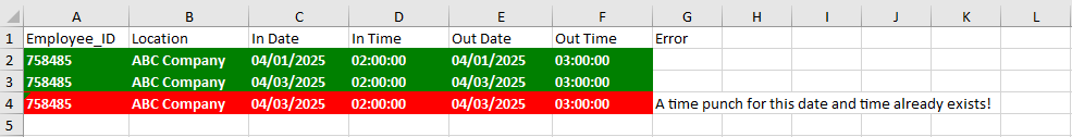 Employee ID and Location must be an exact match.