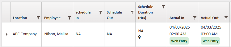 Time entries created using the import are tagged Web Entry.