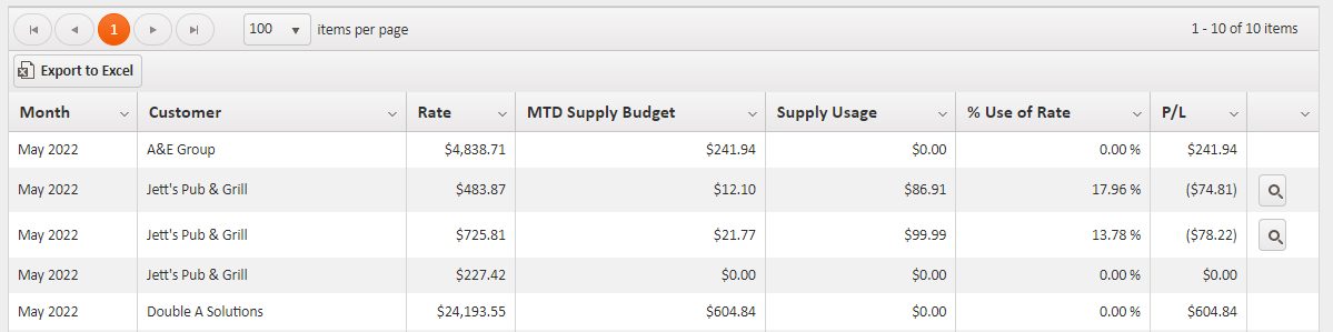 - P/L - Profit vs. Loss (MTD Supply Budget - Supply Usage).