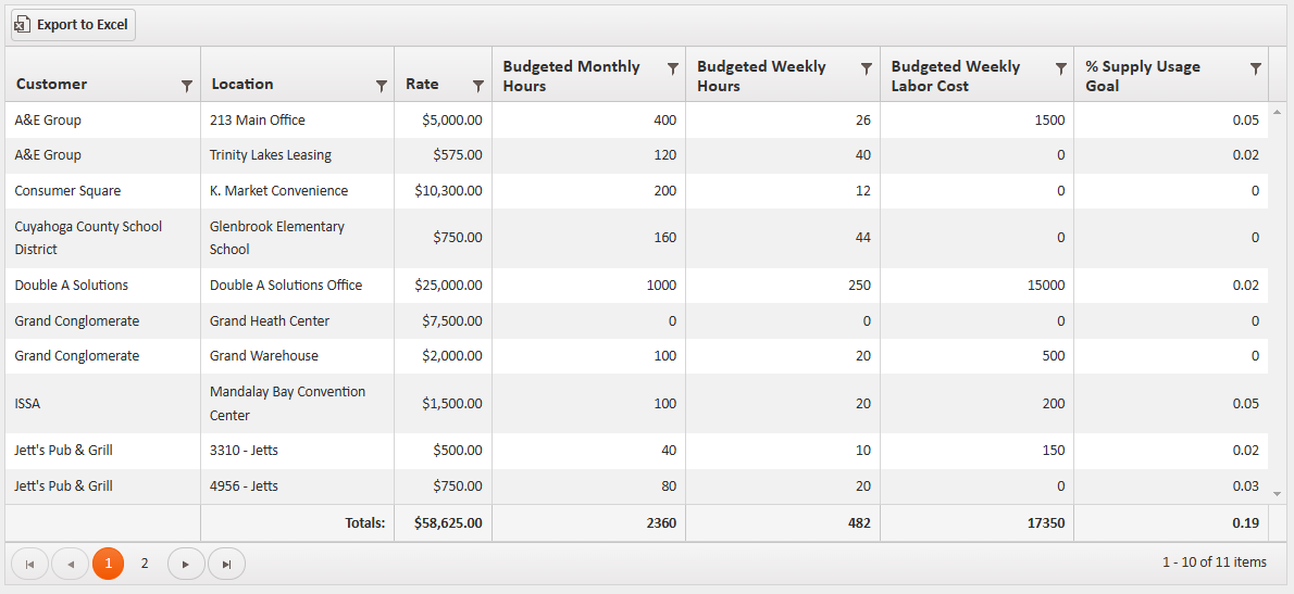 - Rate - The monthly rate, or budget, for this location.